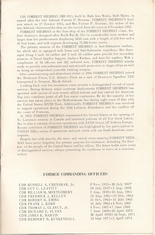 | 78k | USS Forrest Sherman (DD-931) underway, circa 1963, location unknown. Photo Giorgio Arra. | Robert Hurst |