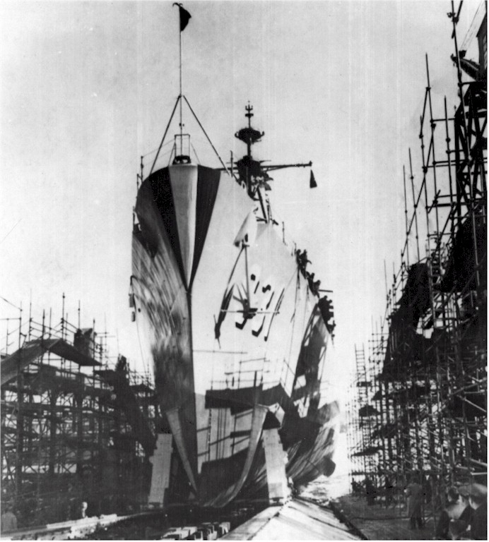 | 128k | USS Forrest P. Sherman (DD 931) going down the ways at Bath, Maine, from the files of the Vallejo Naval and Historical Museum. | Darryl Baker |