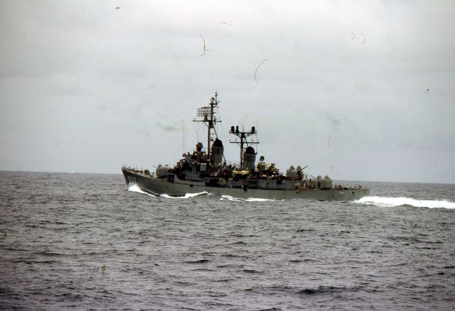 59k | USS Davis underway in the Indian Ocean, photographed by PH2 Patrick D. Tiffany of the carrier USS Constellation (CV-64), 19 March 1979. USN photo 1174656, Ships History and Archives Branch. | Robert Hurst |