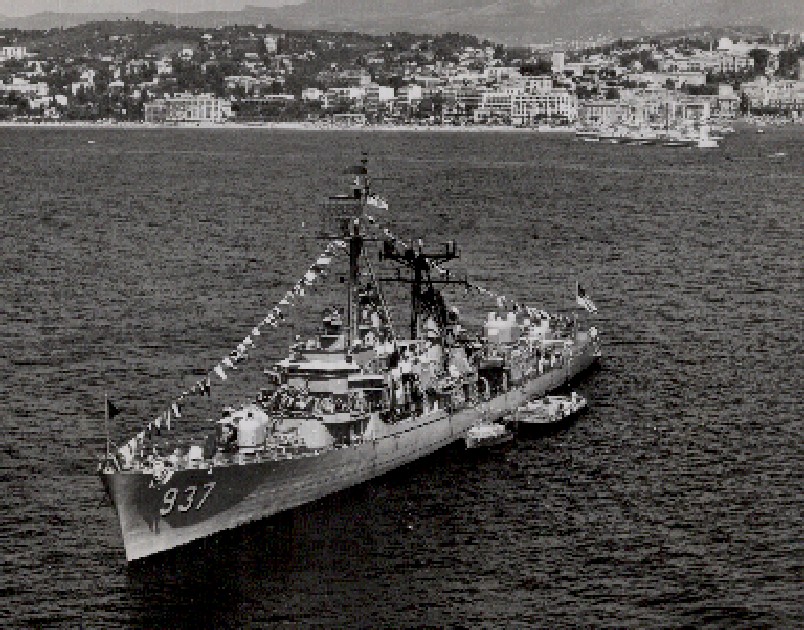 204k | USS Davis at anchor off Cannes, France, 04 July 1962. She is in "dressed ship" stste for Independence Day. USN Photograph CVA-62-1232-7-62, Naval History & Heritage Command, Curator Branch "L" File. | Robert Hurst |