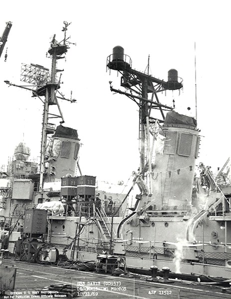 109k | US Navy file picture of Davis being prepared for superstructure conversion - October 31 1969. This picture was given to me by former CO, Capt Edward J. Mountford, USN (Ret). | Jim Hocking |