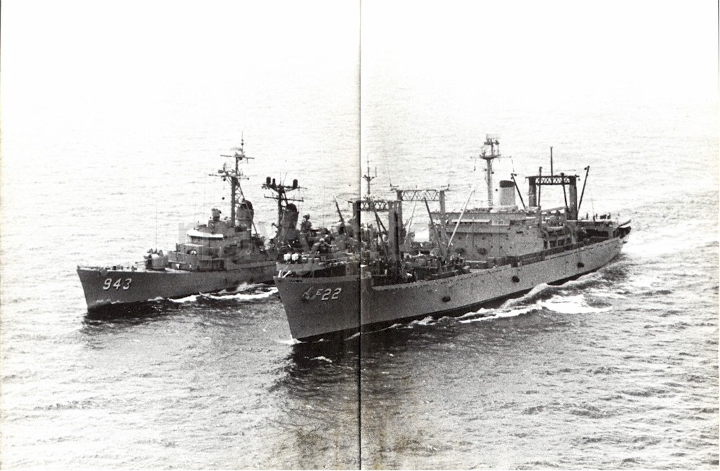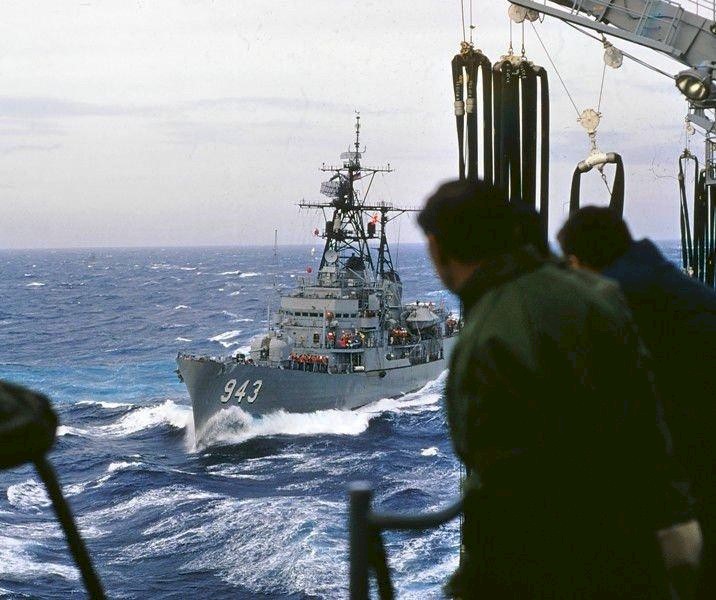| 147k | Undated, USS Marias (AO-57), center, refueling USS Blandy (DD-943), left, and USS Lake Champlain (CVS-39). | Ron Reeves |