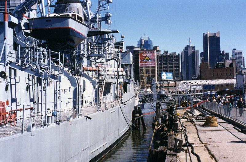 | 132k | May 1, 1995, New York City, New York: The decommissioned destroyer USS Edson (DD-946) tied up at the Intrepid (CV-11) Museum during Fleet Week 95. The Edson is now a memorial ship. | Fred Weiss |