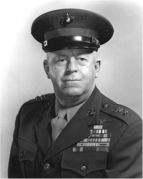 | 57k | Merritt Austin Edson born 25 April 1897 in Rutland, Vt., enlisted in the Marine Corps Reserve at the outbreak of World War I and was commissioned a second lieutenant in the regular Marine Corps 9 October 1917. He served in France from September 1918 to December 1919. In 1941 he directed experimental operations which included training with high-speed transports. These led to the organization of the 1st Marine Raider Battalion one month after the United States entered World War II. This battalion was the prototype for Marine Raider and Army Ranger Battalions formed later in the war. Edson led his battalion during the invasion and capture of Tulagi from 7 to 9 August 1942, then was assigned to defend the ridge on Guadalcanal which dominated Henderson Field. For his superb and heroic leadership on the night of 13 and 14 September when his men stood off a fanatic attack by a much larger Japanese force, Colonel Edson was awarded the Medal of Honor. He took part in the Tarawa invasion and in 1944 was appointed Chief of Staff, Fleet Marine Force, Pacific. After duty in the Office of the Chief of Naval Operations and Marine Corps Headquarters, Major General Edson retired 1 August 1947. He died 14 August 1955 in Washington, D.C. Photo Courtesy of the USMC Historical Division. | Bill Gonyo |
