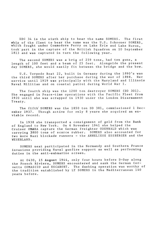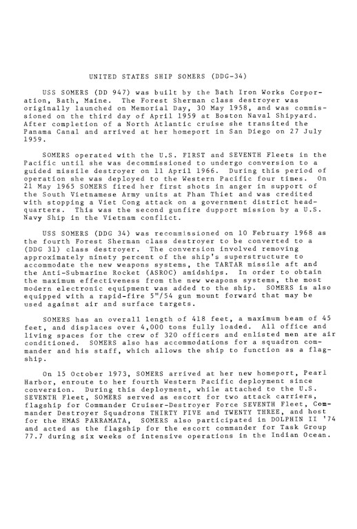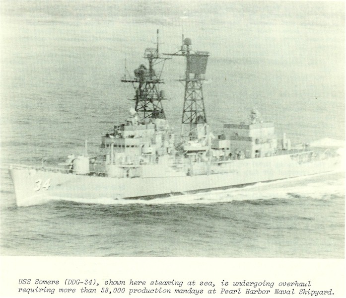 | 35k | 1959 at Gitmo Bay, Cuba, Somers collided with a camel at the pier and punctured a hole in her port side spilling 50,000 gal of oil into the Bay. | Jerry Daugherty |