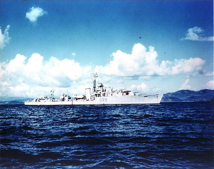 | 125k | HMS Charity engaged in Operation Fishnet off North Korea, September 16 1952. HMS Charity (R29) was a Ch-class destroyer of the Royal Navy laid down by John I. Thornycroft and Company of Woolston, Southampton on 9 July 1943. She was launched on 30 November 1944 and commissioned on November 19 1945. She served for Great Britain during the Korean War. She was sold to the United States Navy on June 16 1958 and renamed Shah Jehan (DD-962). She was modernized in England under a US contract and transferred to the Royal Pakistan Navy as part of the Military Aid Program (MAP) on December 16 1958 where she served as Shah Jehan or "Emperor of the World". | US Navy |