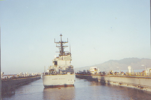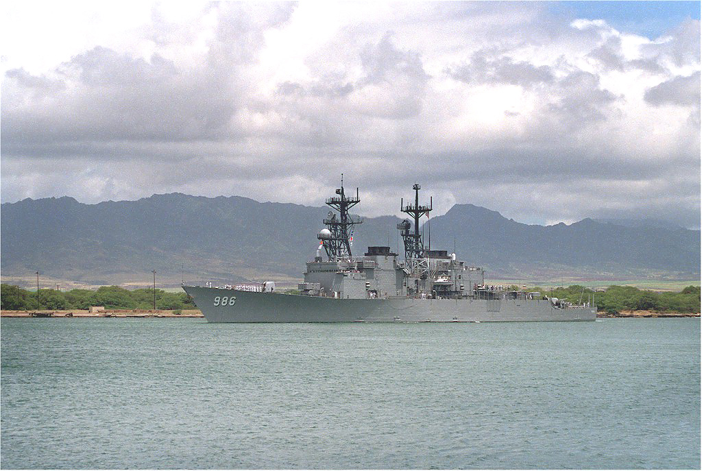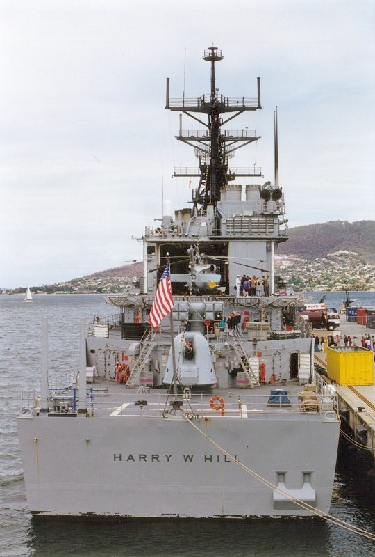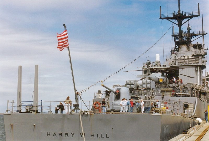 | 188k | DN-SC-92-02610 The destroyer USS Harry W. Hill (DD 986) departs from Naval Station Pearl Harbor, after a port visit. Photo by OS2 John Bouvia on 1 June 1991. | Robert M. Cieri |
