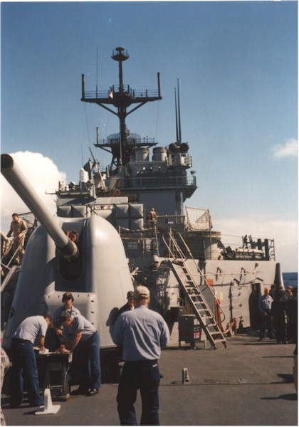 | 61k | Picture looking forward from fantail with 5" gun, circa 1997-1998. | Scott Akins |