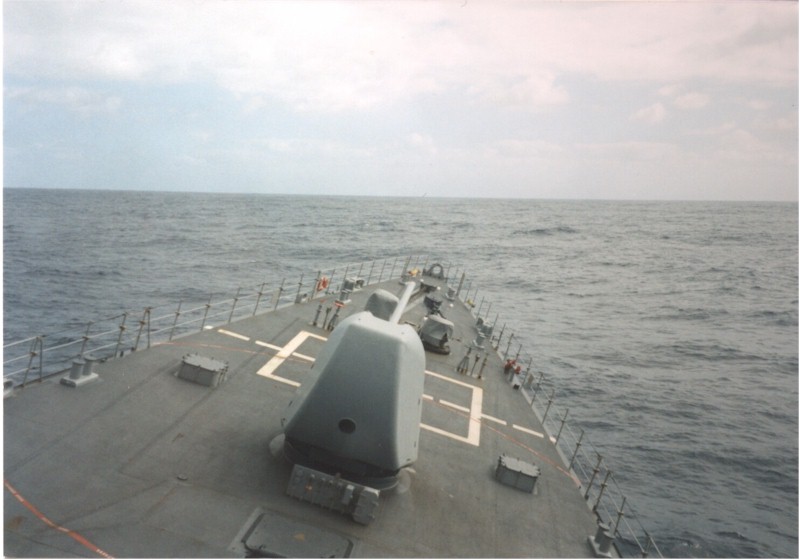 | 78k | Picture from Bridge looking over foc'sle taking some rolls during Tiger Cruise 1998. | Scott Akins |