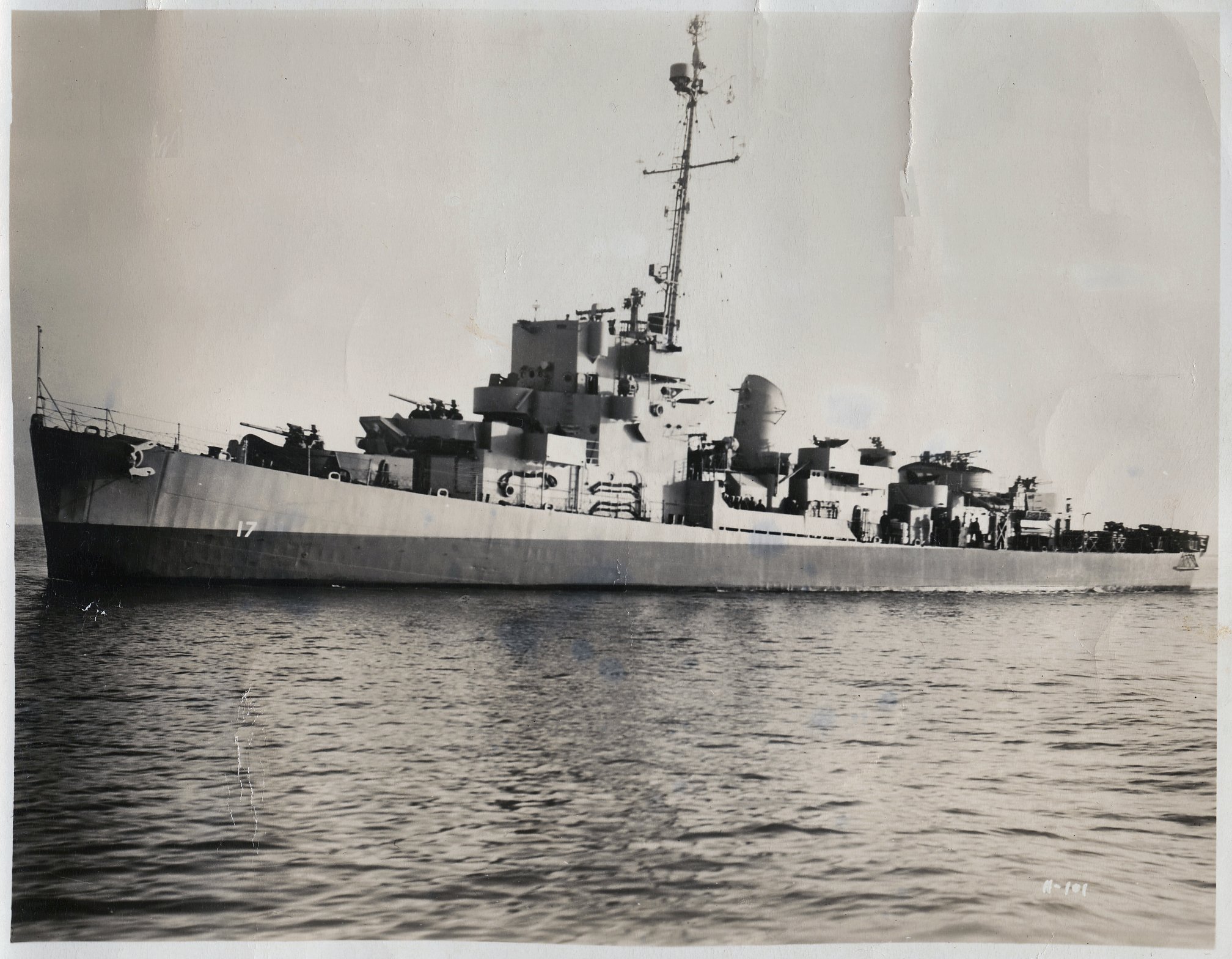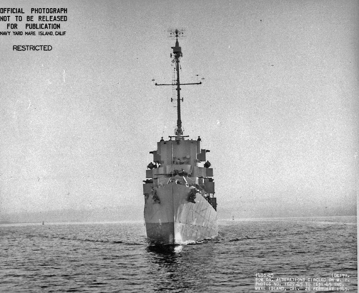 485k | 26 February 1945: San Francisco Bay - A wartime ship portrait taken off the Mare Island Navy Yard. (Photograph from the Bureau of Ships Collection, U.S. National Archives) (This copy from the collection of Gordon R. Deits, Daly's last CO and Tom's Dad) |