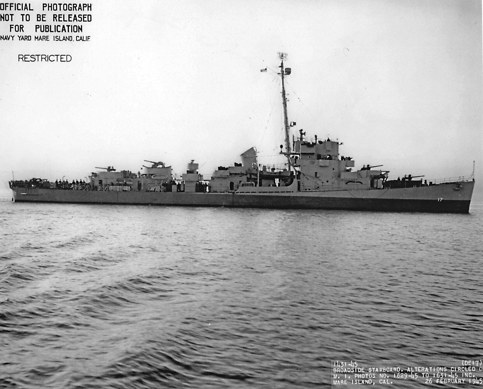 489k | 26 February 1945: Vallejo, Cal. - USS Edward C. Daly (DE 17) off the Mare Island Navy Yard. (U.S. Navy Photo #19-N-79880 from the United States National Archives) | ||