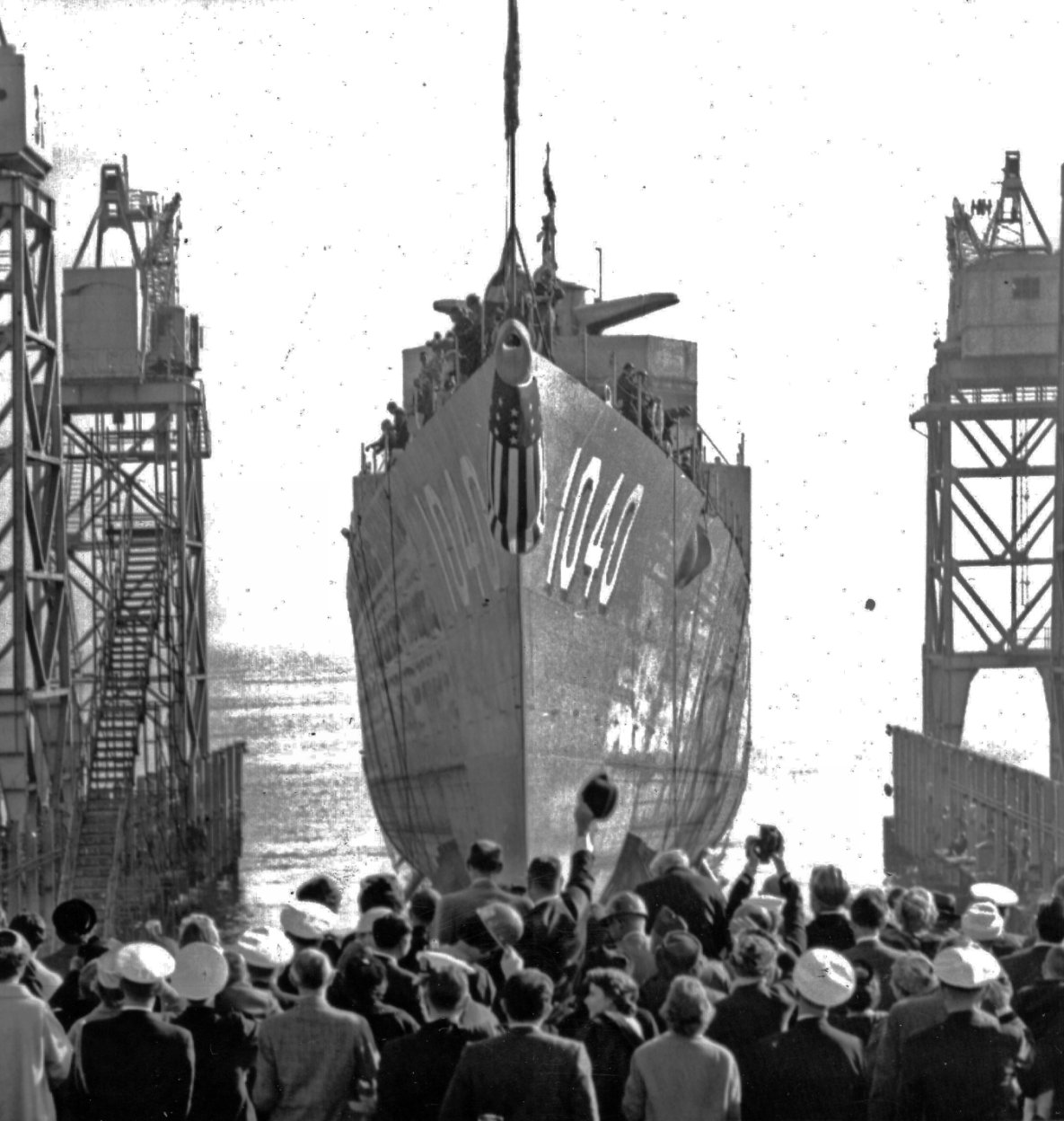 185k | 31 October 1963: San Francisco, Cal. - Garcia (DE 1040) slides down the building way into the water of San Francisco Bay. (Photo from the files of the Vallejo Naval & Historical Museum) |
