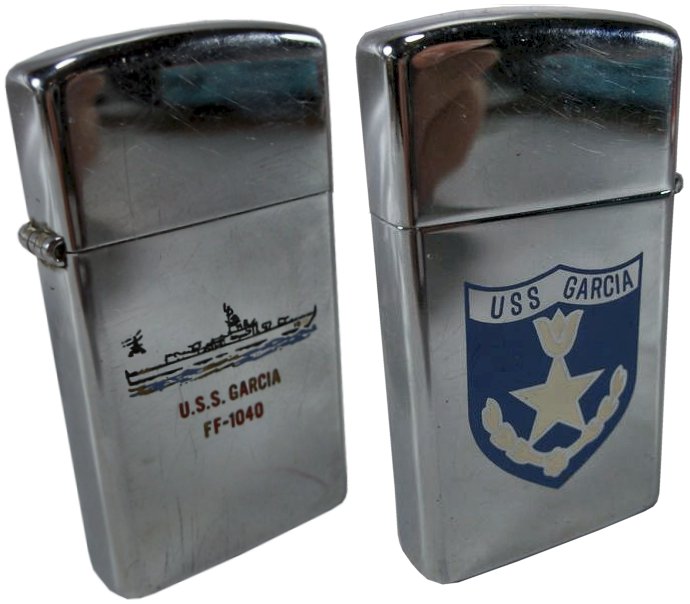 Atlantic Fleet Sales, Norfolk, Va.; shown at 125% of original size) Caption reads: U.S.S. Garcia (FF-1040) - The first of the "Garcia" class frigates of the United States Navy. Built by Bethlehem Steel Corporation, San Francisco, Calif., and commissioned on 21 December 1964. | ||