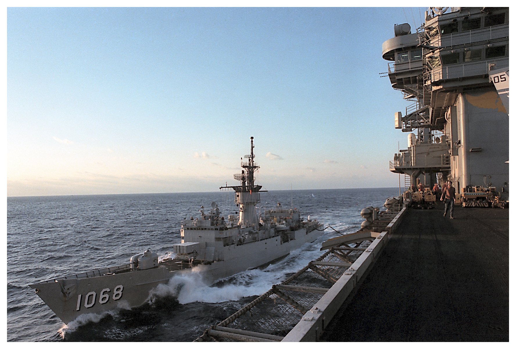 400k | 26 February 1988: At sea - Vreeland comes alongside the nuclear-powered aircraft carrier USS