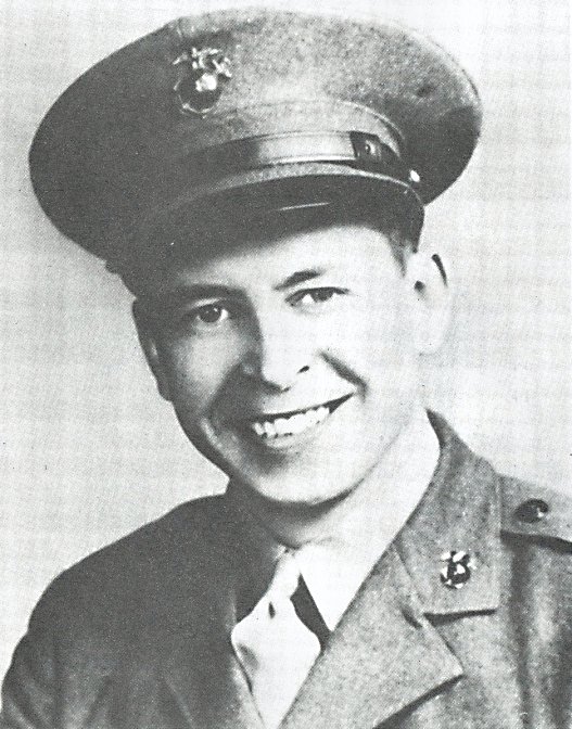 in the U.S. Marine Corps Reserve on 10 November 1942, he was promoted to Sergeant, having attained that rank while in the National Guard. Following recruit training at San Diego, Cal. he