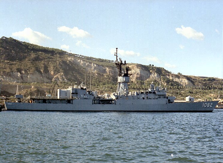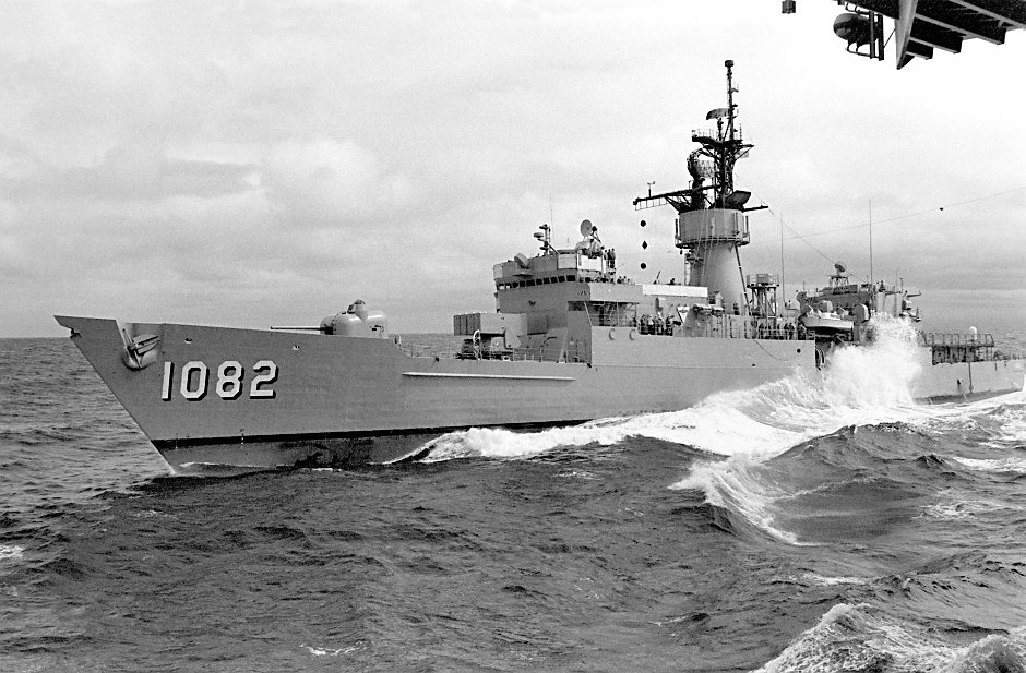 109k | 1975: USS Elmer Montgomery (FF 1082) taken by the gun camera of a French Navy Dassault Super Etendard during operations in the Gulf of Aden in 1975. (Official French Navy photo) | ||
