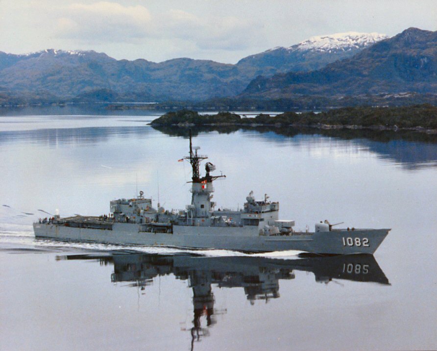 122k | October / November 1992: Shown on the left during her last underway period, Canadian Fleet Ops. HMCS Preserver (510) is in the center, USS Clark (FFG 11) to the right. | Craig Vance Captain, USN (ret.) CO, FF 1082, 1992-1993 | |