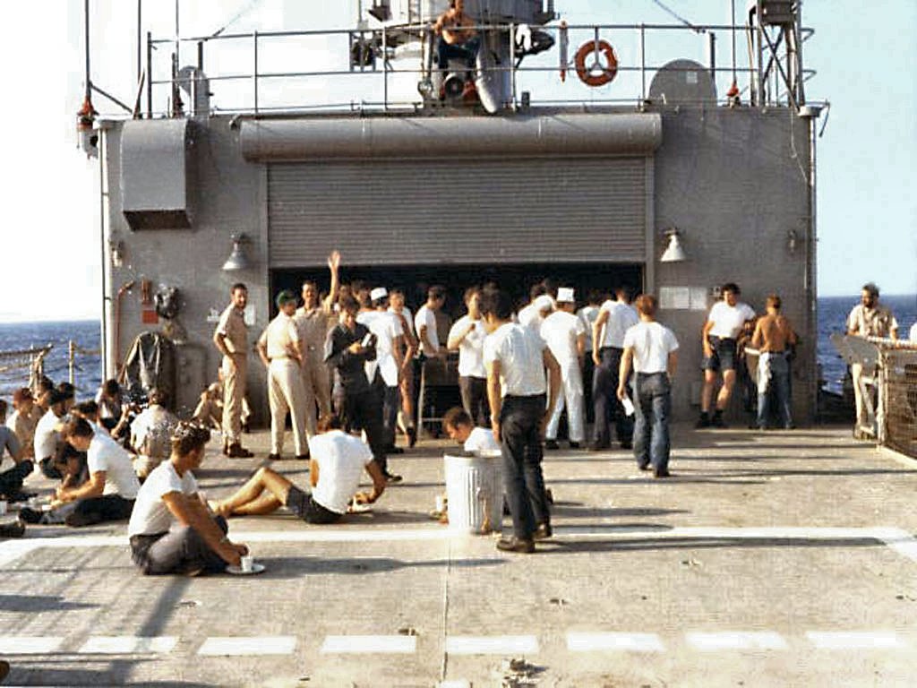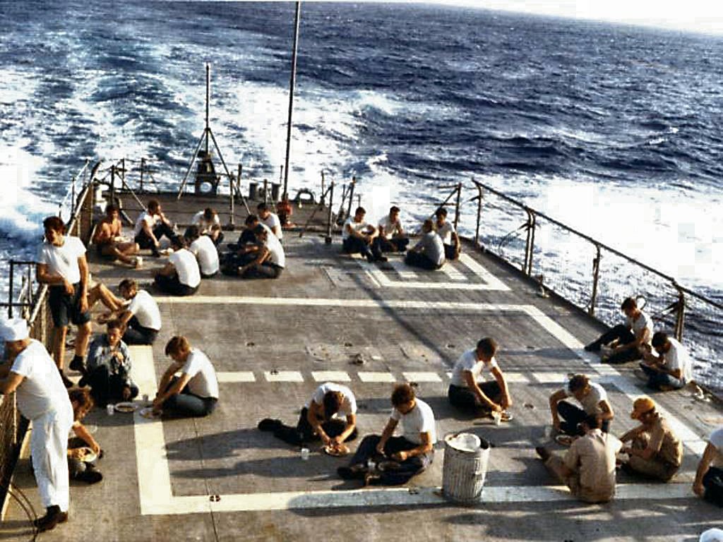 191k | 30 March 1972: at sea - The crew enjoying a "Steel Beach Picnic" while enroute from Guantanamo Bay to Norfolk. | Richard Gibson Captain, USN (ret.) Plankowner | |