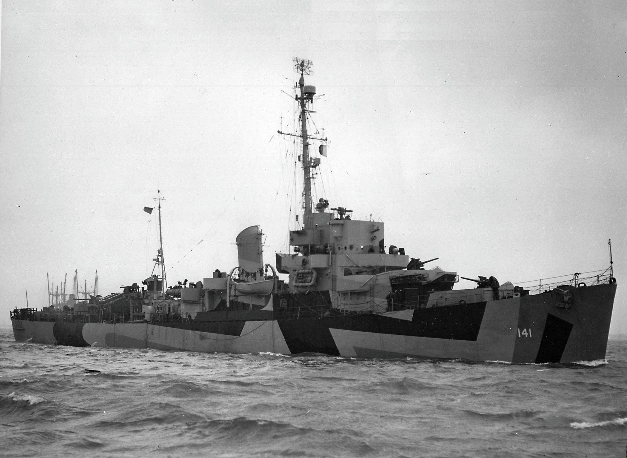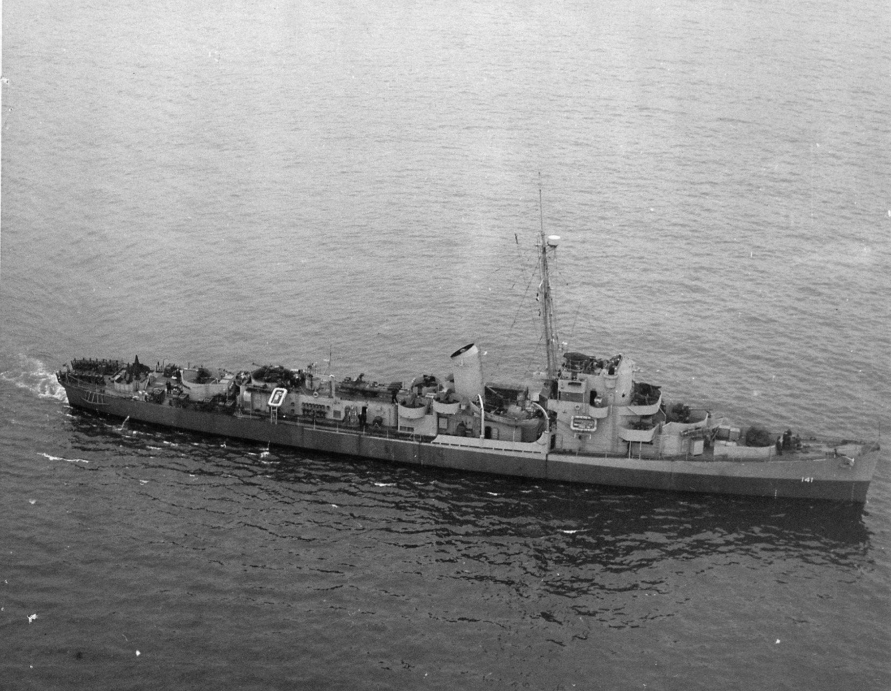 for an overhaul prior to her being assigned to the Pacific Theater of Operations. (U.S. Navy photo #CP-DE-141 19-N-80588 from the National Archives and Records Administration, College Park, Md.; courtesy of Chris Wright) (U.S. Navy photo #CP-DE-141 19-N-80589 from the National Archives and Records Administration, College Park, Md.; courtesy of Chris Wright) |