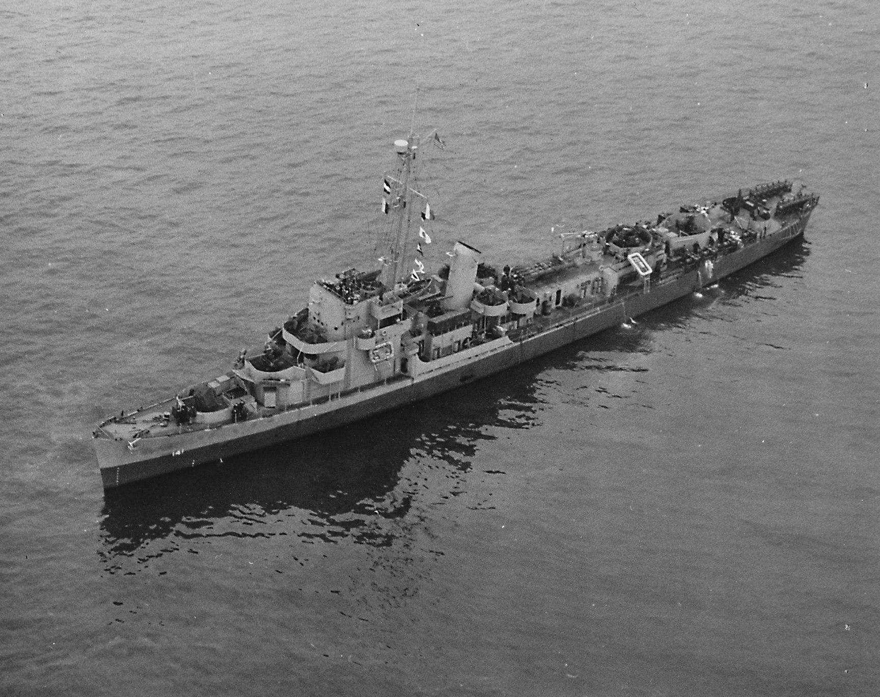 Field. Hill was in the Brooklyn Navy Yard for an overhaul prior to her assignment to the Pacific. (U.S. Navy photo #CP-DE-141 19-N-62971 from the National Archives and Records Administration, College Park, Md.; courtesy of Chris Wright) (U.S. Navy photo #CP-DE-141 19-N-62972 from the National Archives and Records Administration, College Park, Md.; courtesy of Chris Wright) |