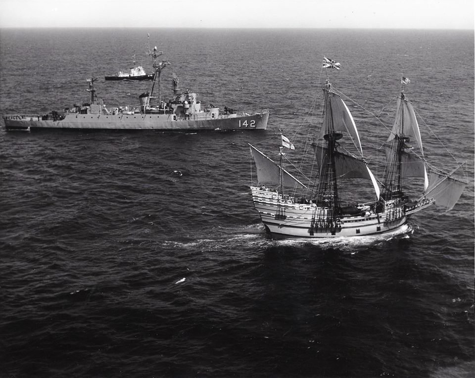 137k | I received this photo of USS Fessenden (DER 142) escorting the Mayflower II in 1957 from the Plymouth Plantation people and would like to get it to the Fessenden crew if possible. Here is their explaination of the photo; "Our Mayflower II, with its story of friendship between nations following World War II, is a reminder to us always. Now in his 90s, Clarence Gogeun was a Navy photographer in 1957 who took a number of pictures of Mayflower II from the sky during her crossing to Plymouth, Massachusetts - below is one, with a U.S. Navy vessel in the background. He recently shared his photos with us and we are delighted to share this one with you today!" | Karl Kohler | |