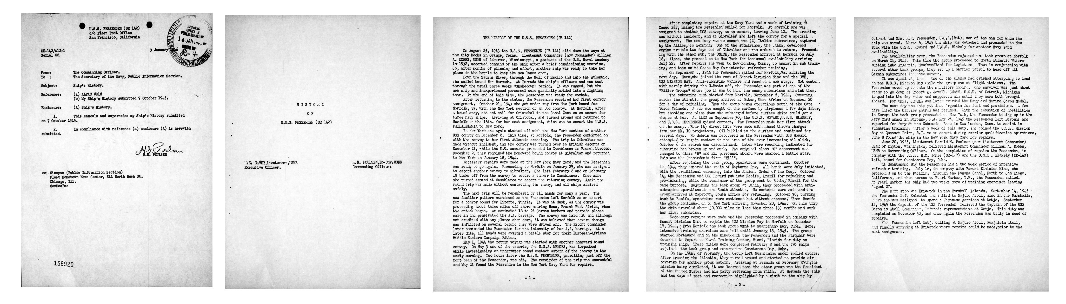 | View the official War History of USS Fessenden as submitted by the ship at war's end. |