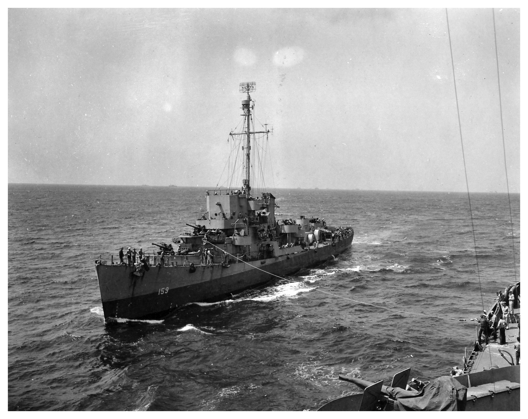 378k | 12 May 1944: USS Laning (DE 159) preparing to fuel from USS Merrimack (AO 37). Between 0840 and 0958 Laning received 35,0221 gallons