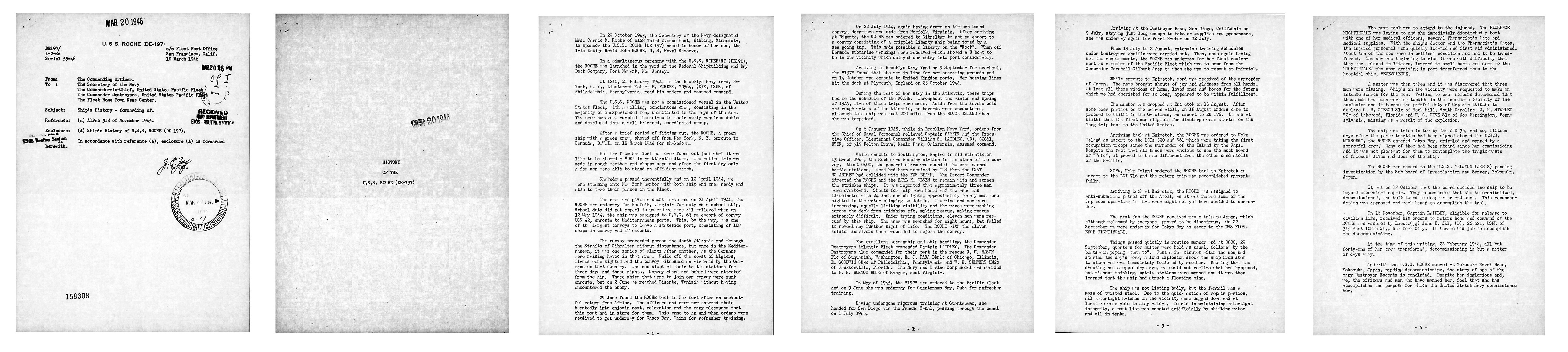 | View the USS Roche (DE 197) DANFS history entry located on the Naval History and Heritage Command web site. |