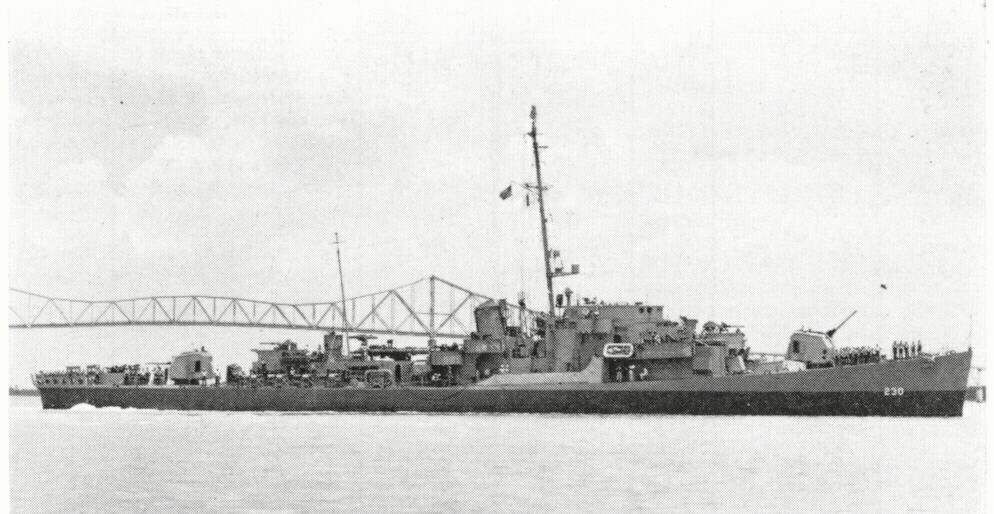 183k | November 1945: the Philippine Islands - On 04 November, Chaffee departed Leyte to rejoin her division at Subic Bay. Early on the morning of the 5th, during a local thunderstorm with zero visibility, she ran aground in the San Bernardino Straits off Port Gubat, Luzon. After three days on the reef, Chaffee was pulled clear and towed back to Guiuan Roadstead where she entered drydock ARD-20. Her keel had been buckled, throwing the main engine out of line in #1 engine room. During five weeks in drydock, the starboard propeller was removed completely, the port tail shaft and screw replaced, and strengthening beams were welded to the keel, On 19 December Chaffee went out on a successful trial run, having made good 18 knots on one screw. After anxiously awaitng news as to the ship's disposition, with personnel getting dangerously low due to demobilixation, Chaffee put her bow eastward on 10 January 1946, heading for Pearl Harbor, via Eniwetok, for further orders. | John Epp Curator DE Historical Museum USS Slater at Albany, N.Y. | |