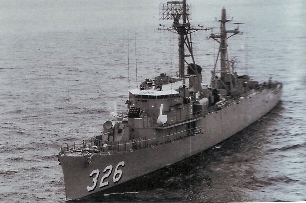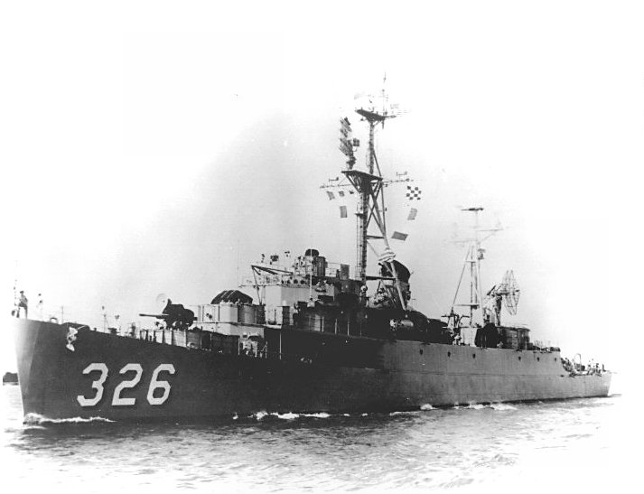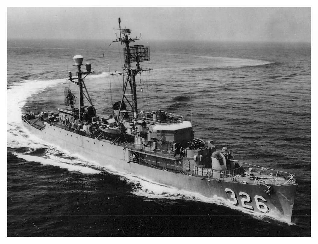 133k | undated: A photo of the radar picket escort ship USS Thomas J. Gary (DER 326) underway, location unknown. Note the Hedgehog in the superfiring position