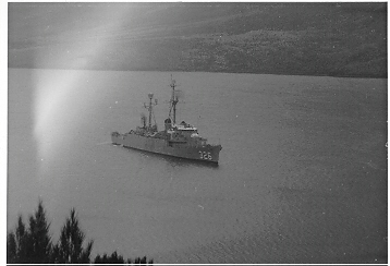101k | Thomas J. Gary underway in Otago Harbor, Dunedin, New Zealand. Photo taken sometime between Oct. 1965 and Feb. 1966. (From collection of Archie Cunningham RD2, USN) | ||