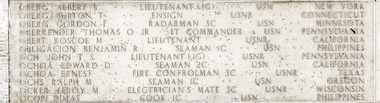 Thomas Olin Oberrender Jr. was born to Thomas Olin and Helen (Graaf) Oberrender in DuBois, Pa. on 24 September 1906. Appointed to the Naval Academy, where he acquired