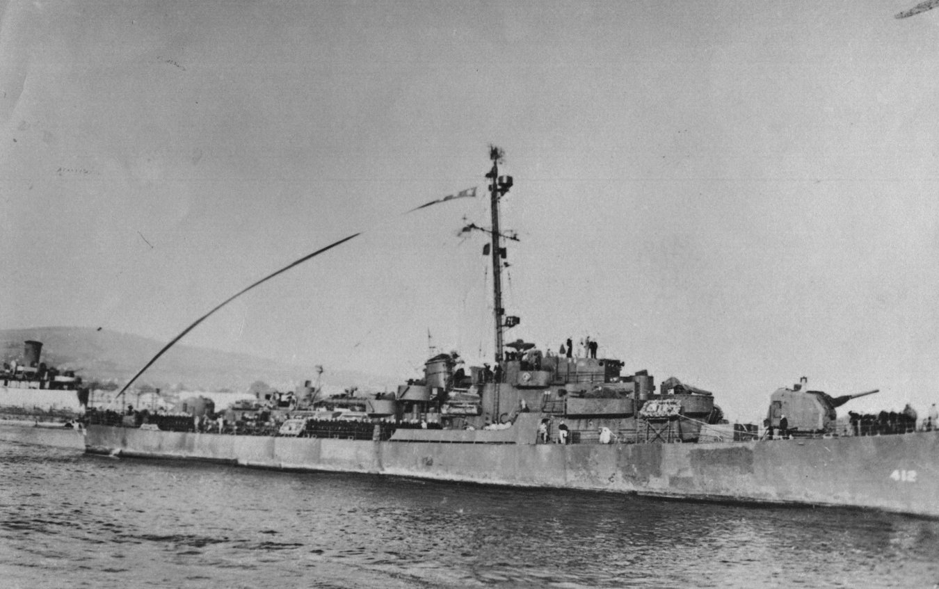 422k | A starboard view of USS Walter C. Wann (DE 412) at an unidentified location wearing camouflage scheme MS31/22D. The photo was taken sometime before 04 October 1944,