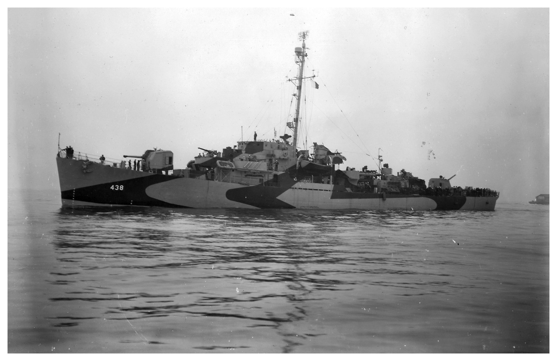 219k | 27 May 1944: the East River, New York Harbor - USS Corbesier (DE 438) in Measure 31/22d camouflage scheme off the New York Navy Yard two months after being commissioned.