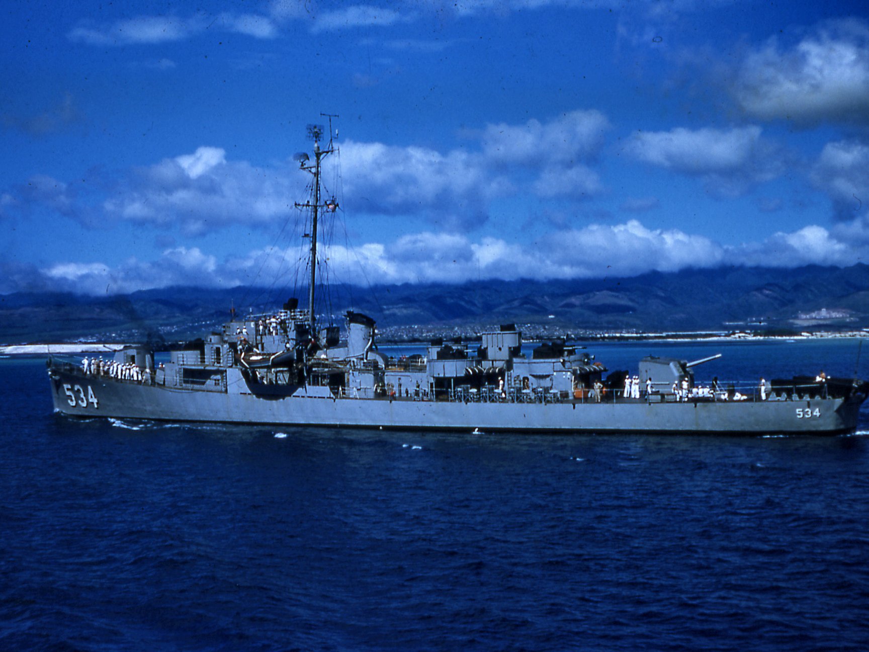 1955: off the coast of Hawaii - Silverstein underway off Pearl Harbor.
