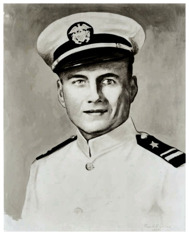farm to commemorate the day his father, Peter Vandiver (sic), claimed an 80 acre-tract of land in Union Township, Johnson county, Indiana. Norman's father, Fred Forsythe Vandivier, a graduate of Franklin high school class of 1908, married Mary Rebecca Hardin, a graduate of Nineveh high school class of 1913, at her parent's home in Nineveh, Johnson, Indiana on 27 Jan 1915. Immediately after their wedding ceremony, Fred and Mary Vandivier departed for Edwards, Mississippi. The newlyweds journeyed south, making brief visits at Chattanooga, Tennessee and Birmingham, Alabama before arriving in Edwards. Beginning 01 Feb 1915, and for the next two years, Fred was in charge of the agricultural department of a missionary school located in Edwards and run by the Christian Woman's (sic) Board of Missions (C.W.B.M.). The CWBM merged with several other organizations in 1919 to form the United Christian Missionary Society. As part of his duties, Fred also managed a farm of 1300 acres. Mrs. Vandivier served as matron of the girl's dormitory at the Edwards Mission school. The following year Mr. and Mrs. Vandivier sent word home announcing the birth of their first child, Norman Frances (sic) Vandivier, on 10 March 1916. The good news was published on 11 March 1916 in Franklin's only newspaper at the time, The Evening Star. A month later, Mrs Fred Vandivier departed Edwards and traveled to Indiana with her infant son, Norman Francis. They arrived there on Saturday, 15 Apr 1916, to a boisterous welcome by the new grandparents and other close family of which there were many. The following year Fred, Mary and Norman left Edwards for the last time and returned to Indiana in March 1917. Upon their arrival in Indiana, Fred's father, Ira Vandivier, gave Fred a large farm to live on and manage. Over the next seven years, Fred and Mary's family grew with the birth of three more children, Rosemary, Robert Dale and Ellamae Vandivier. All born in Franklin, Johnson County, Indiana. (CONTINUED....) USS Vandivier (DER 540) (1955-1960) was the first ship to be named in his honor. (Portrait from the Indiana Historical Society) |