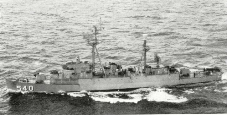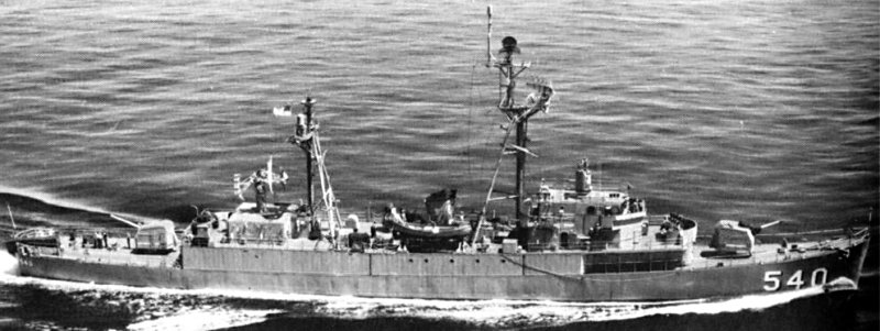 531k | 19 December 1957: the Atlantic Ocean - An aerial view of the radar picket escort ship USS Vandivier (DER 540) underway. (U.S. Navy National Archives photo #USN 1033702 from the Naval History and Heritage Command) |