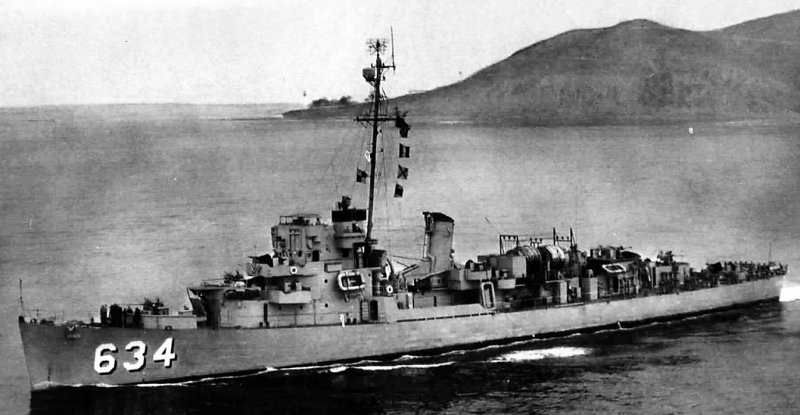 Lieutenant Commander Marvin D. Jones relieved Commander Malcolm G. Evans as commanding officer. (U.S. Navy photo #DE-634 12347-3-52) |