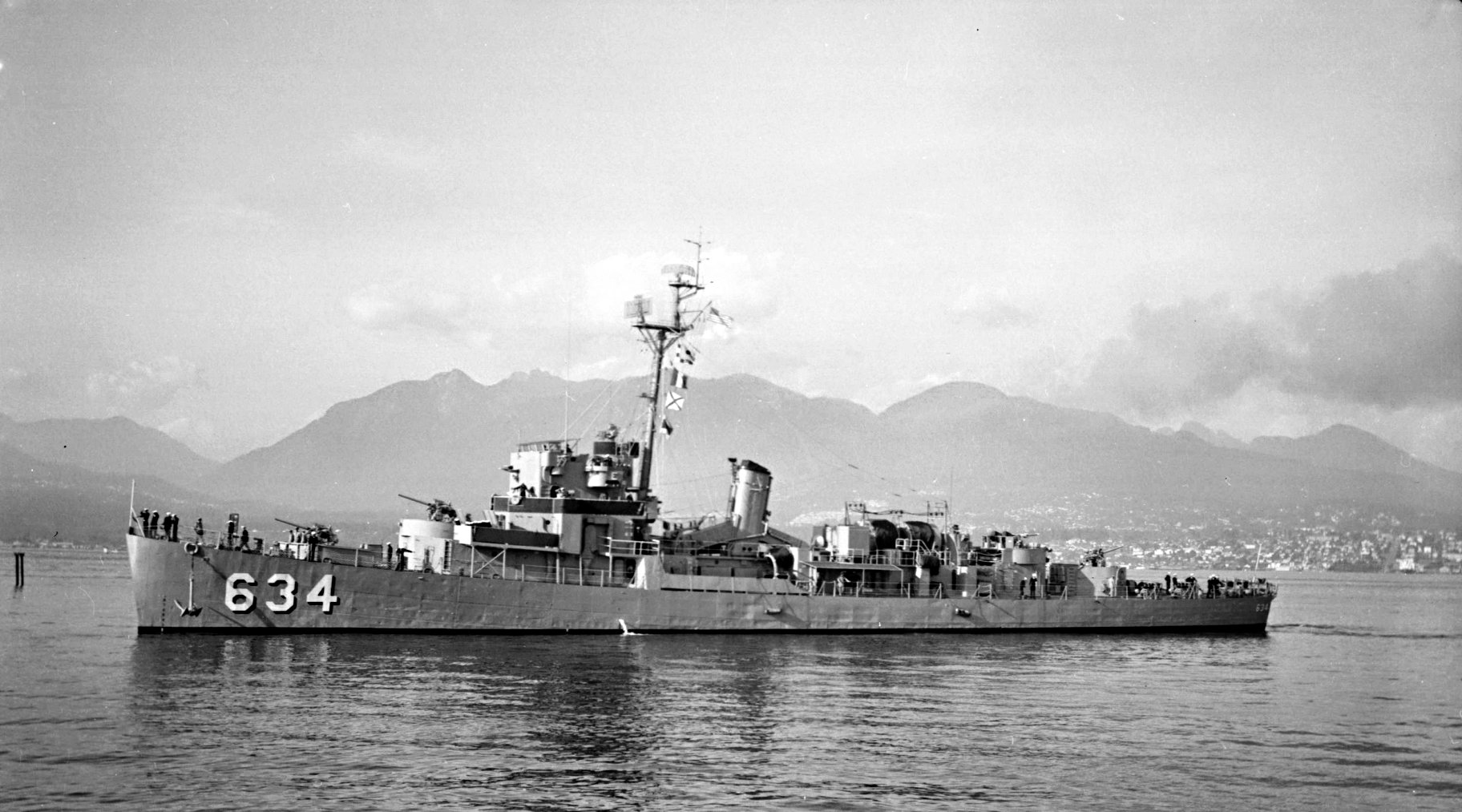 underway after a port visit to Vancouver. (Photograph by Walter E. Frost) (Photo #CVA 447-8946.1 from the City of Vancouver Archives) | ||