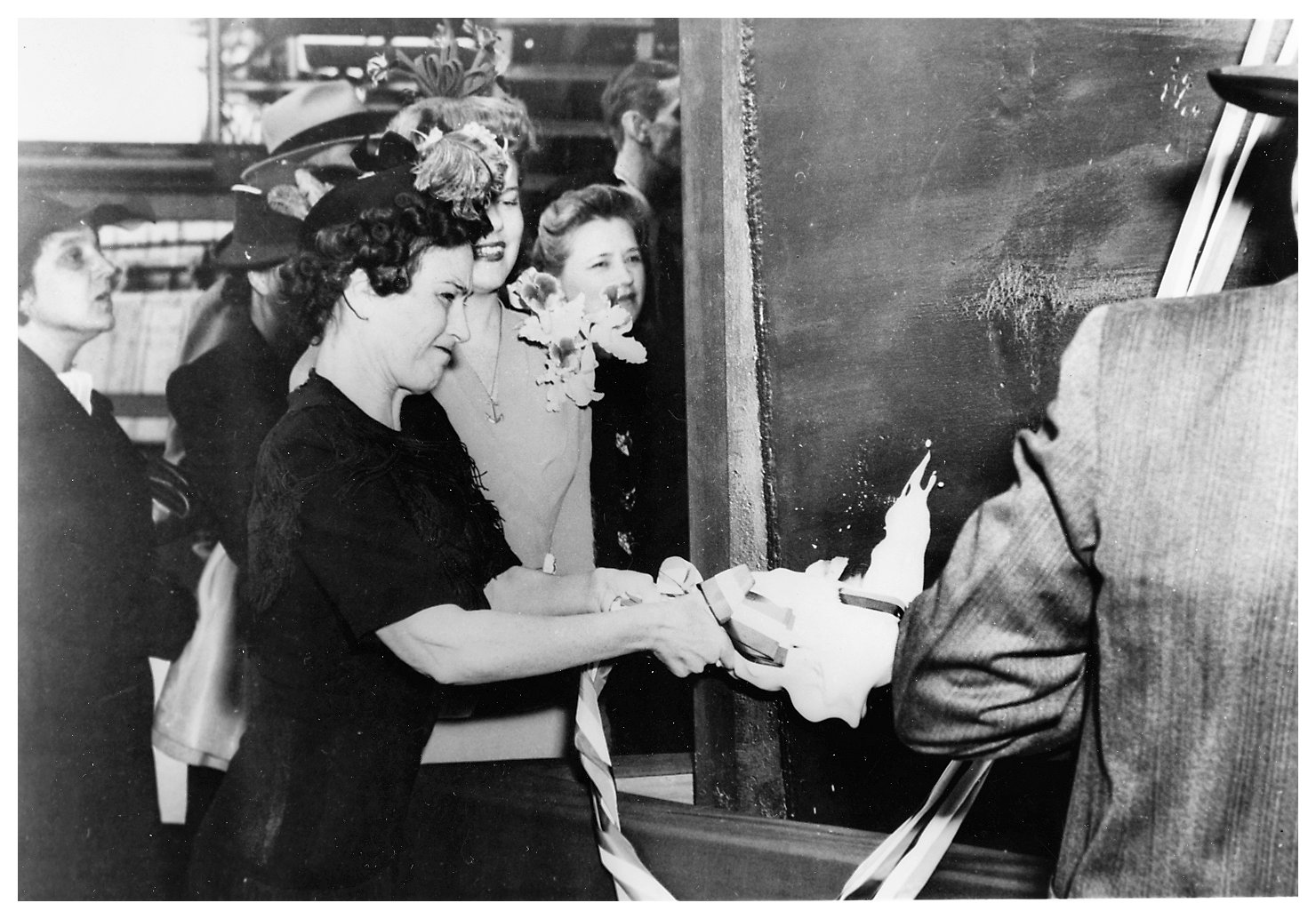 264k | 26 September 1943: San Francisco, Cal. - USS England (DE 635) is christened by Mrs. Harry B. (Thelma) England, mother of Ensign John C. England, the