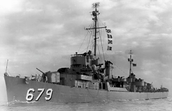 was torpedoed while on convoy duty in the Caribbean theater of operation. USS Greenwood (DE 679) (1943-1967) was the first ship to be named in his honor. (Photo Courtesy of the USS Greenwood DE 679 historian John Lorence) |