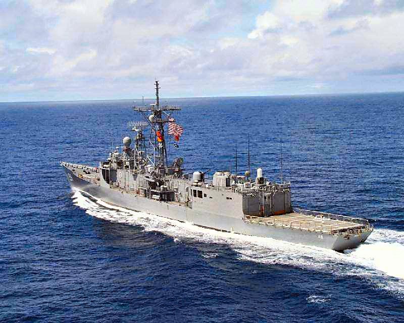 341k | 21 June 2011: the Pacific Ocean - The guided-missile frigate Boone is underway off the coast of Chile during a joint exercise with the Chilean navy and USS