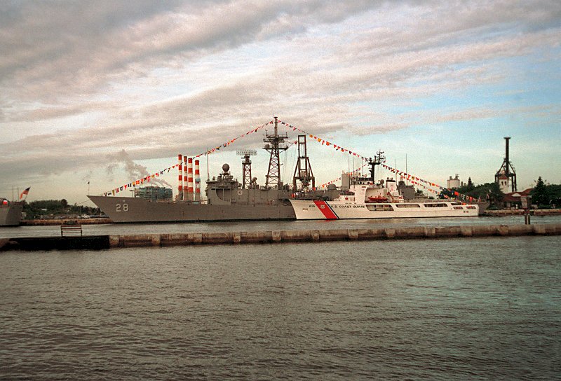 (WMEC-616) tied up alongside the frigate. The ships are making a port visit to celebrate Navy Day, the 221st birthday of the American Navy. (U.S. Navy photo #DN-SC-98-01707 by John Bouvia from the DVIC) | ||