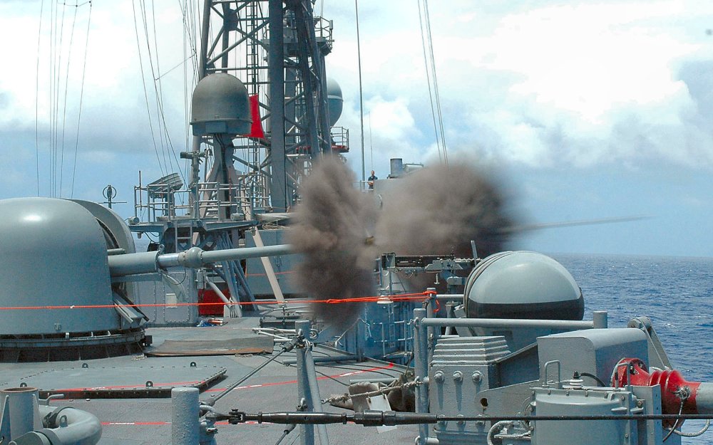 137k | undated: from the Commander, Naval Surface Forces 2007 Photo Contest. The 76mm rapid-fire gun aboard guided missile frigate USS Boone (FFG 28) fires rounds