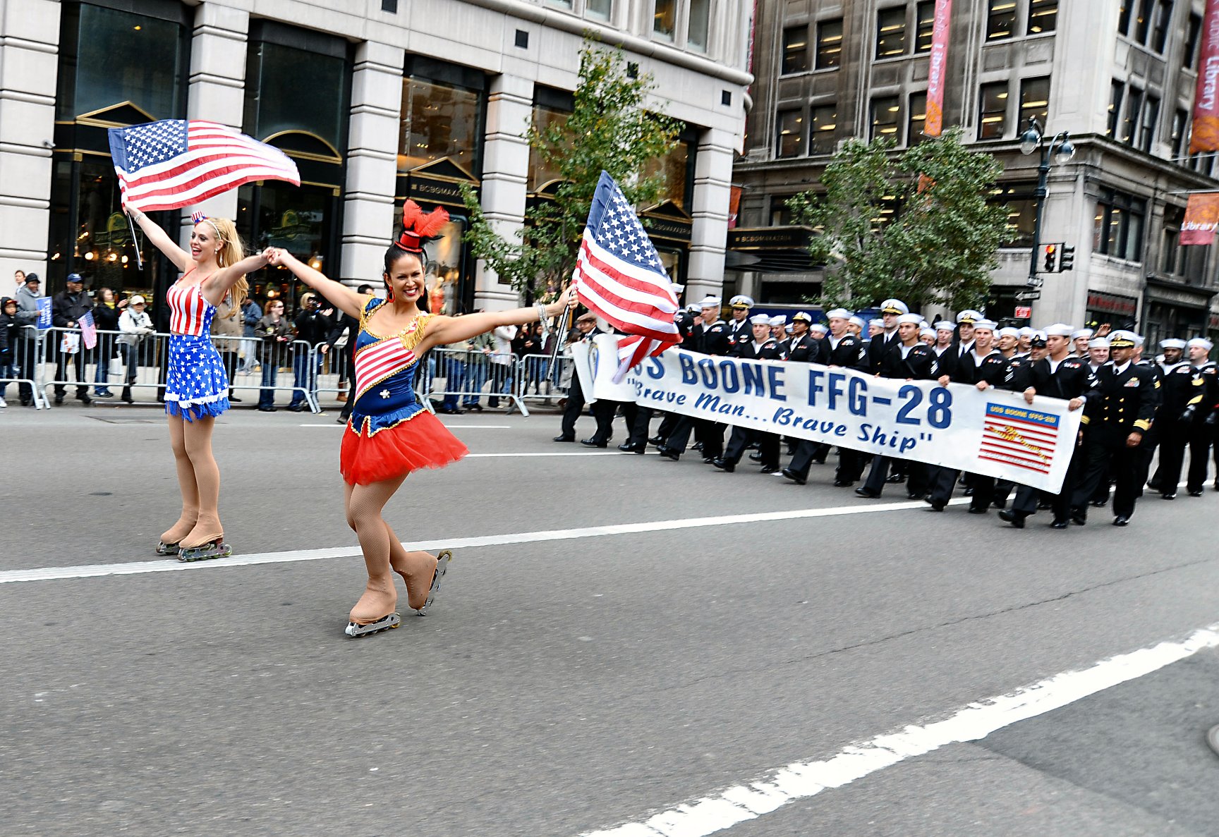 507k | 11 November 2011: New York City, N.Y. - Sailors representing the guided-missile frigate Boone march up 5th Avenue during the 2011 New York City Veterans Day Parade.