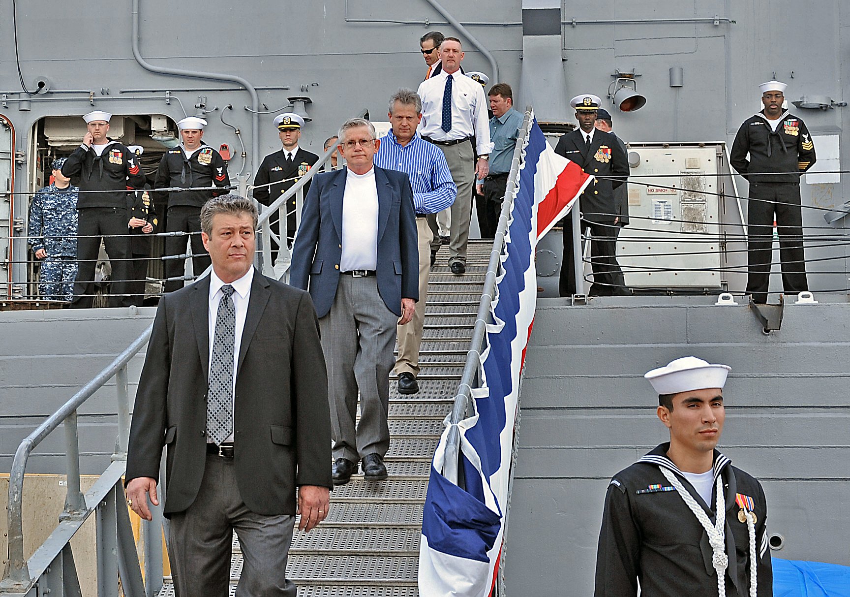 194k | 23 February 2012: Mayport, Fla. - Sailors assigned to Boone disembark the ship for the last time during the ship's decommissioning ceremony at Naval Station Mayport. (U.S. Navy photo #120223-N-TC587-072 by MCSA Damian Berg, from the Navy News Stand) | ||
