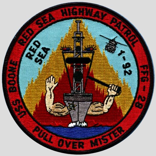 Boone (FFG 28). During the six-month deployment, Boone successfully contributed to 6th fleet operations while assigned independently to Operation Active Endeavor in the Mediterranean.
