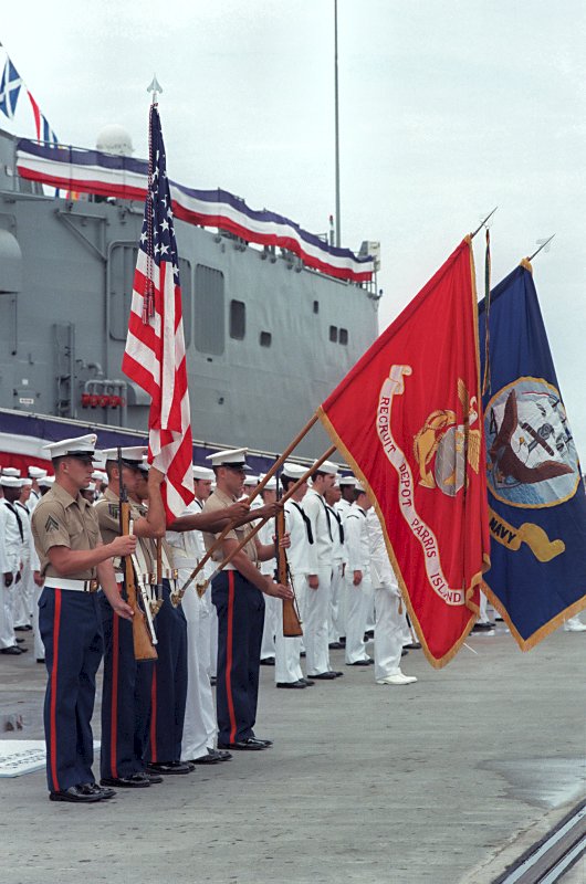 94.1k | 06 July 1985: Brunswick, Ga. - A joint services color guard presents the colors at the commissioning of Elrod. (U.S. Navy photo DVID #DN-SC-86-03269 by PH2 Paul T. Erickson from the DVIC) | ||