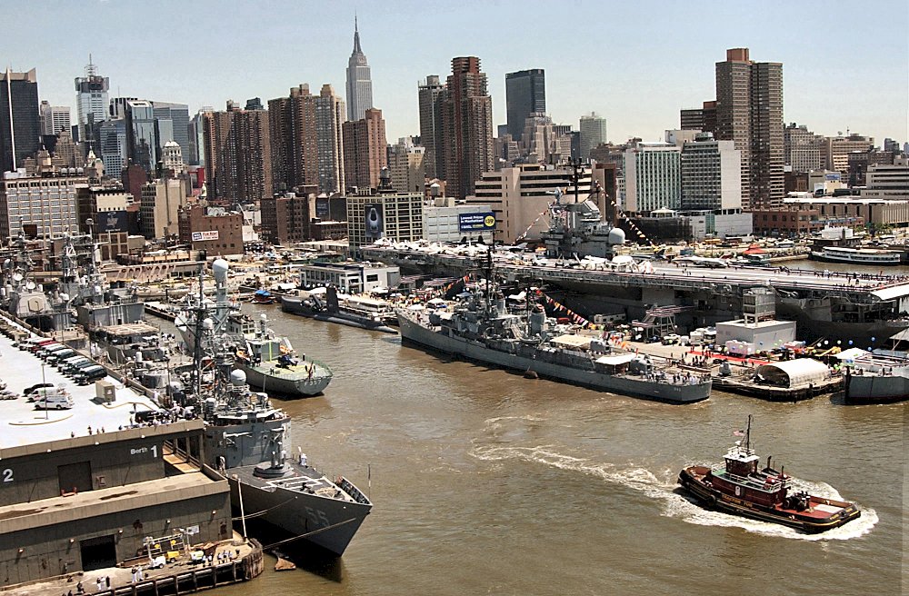 227k | 22 May 2002: New York City, N.Y. - On the Hudson River, some of the Naval war ships participating in Fleet Week 2002, docked at Pier 88 next to the