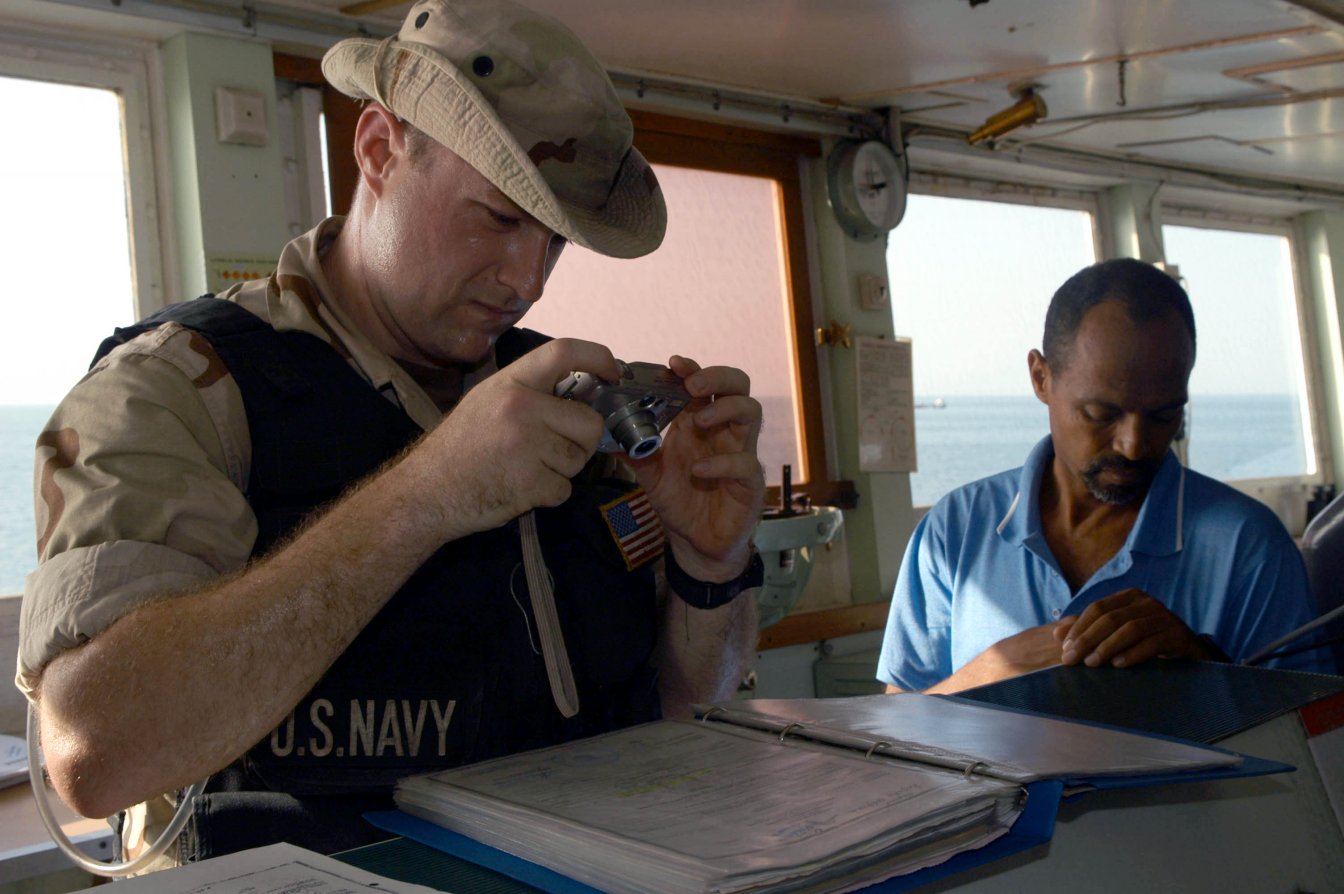 by specially-trained personnel who board and inspect vessels to ensure they are operating in accordance with current U.N. resolutions and to prevent transportation of illegal cargo and personnel.